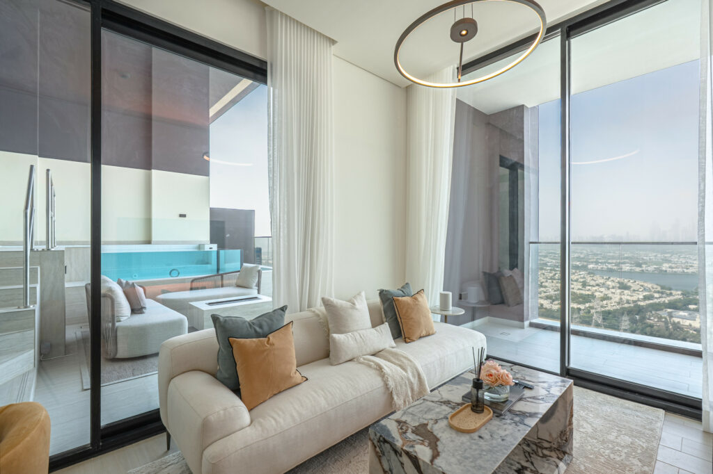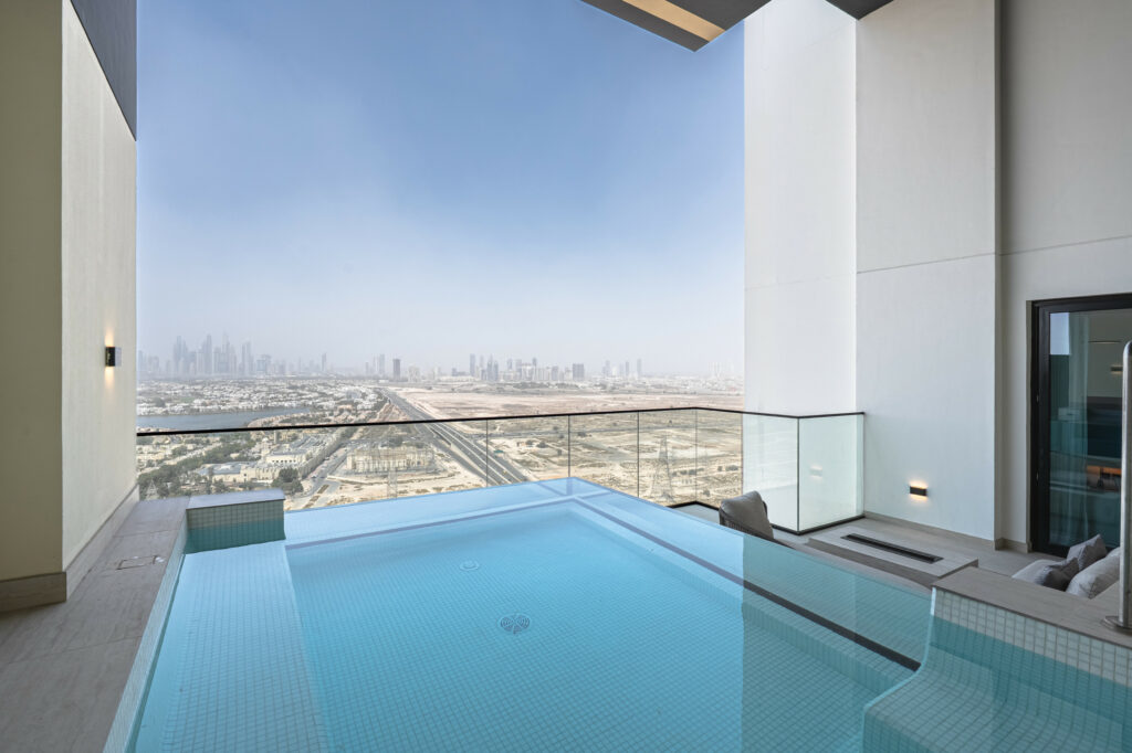 Perched on a high floor, this stunning retreat boasts sleek, modern interiors and a private balcony with its own pool—perfect for unwinding while soaking in the breathtaking skyline views. Designed for ultimate comfort and style, this exquisite space offers an elevated living experience in the heart of JVC.