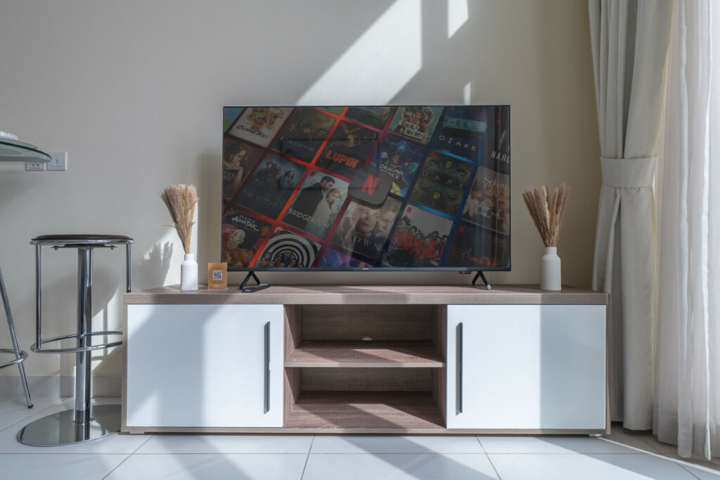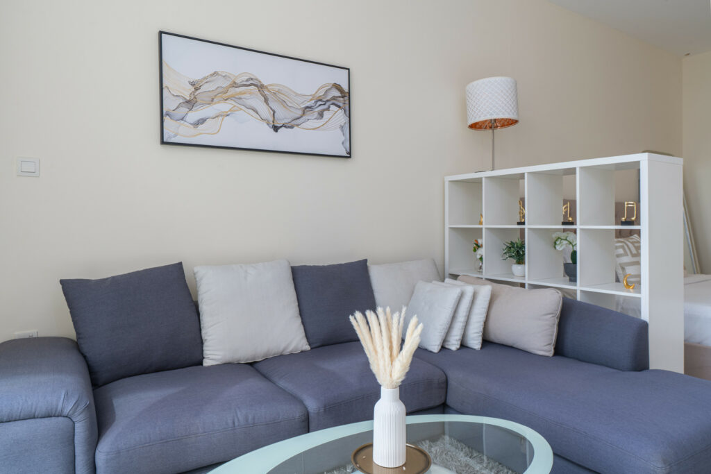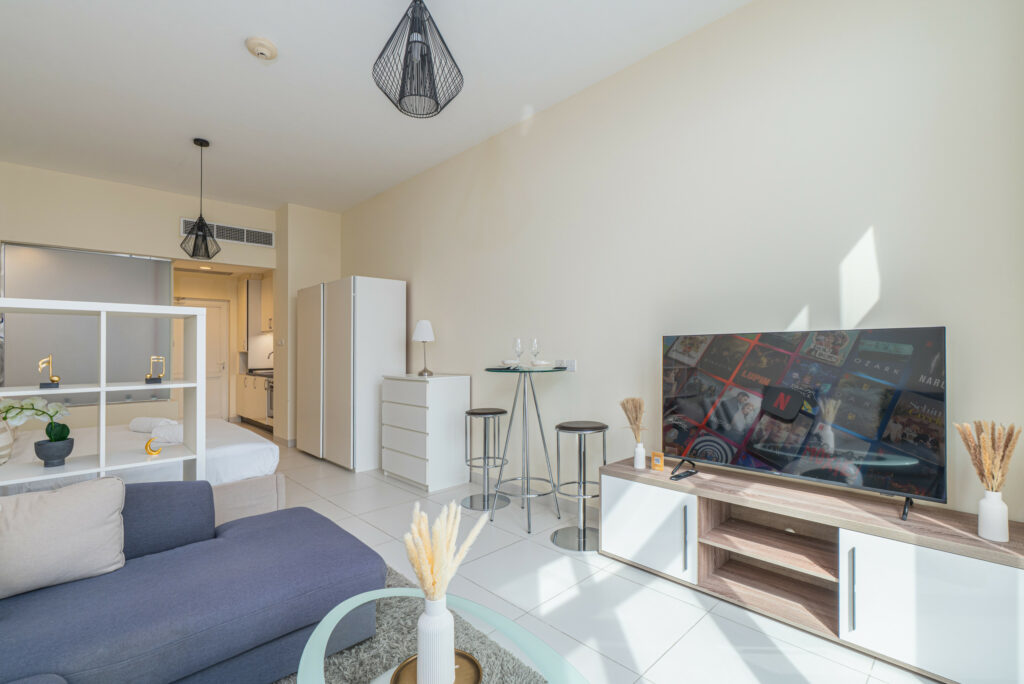 • Cosy living area with sofa and smart TV