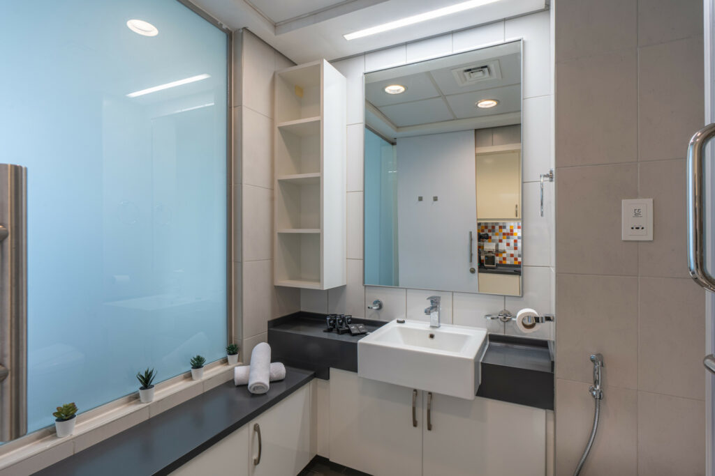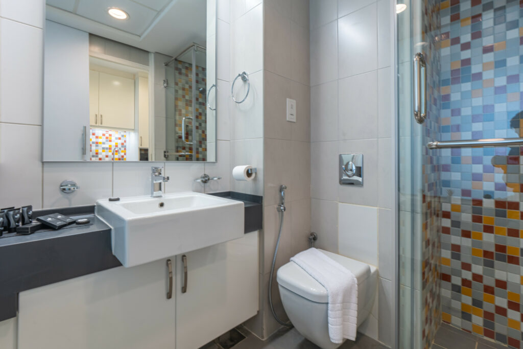 • Modern bathroom with shower