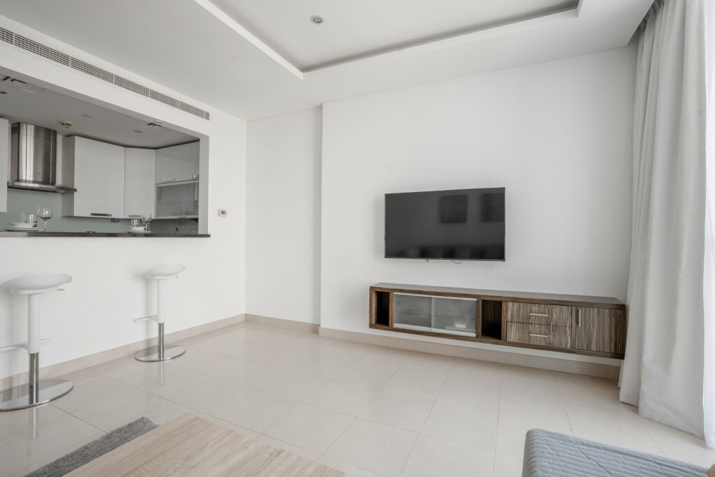 This holiday home is perched on a high floor and offers lovely views of Jumeirah Island, an inviting setting that provides an excellent place to unwind and relax. It is also connected to the Voco Bonnington Hotel, which has an array of on-site restaurants, bars, and entertainment options.
