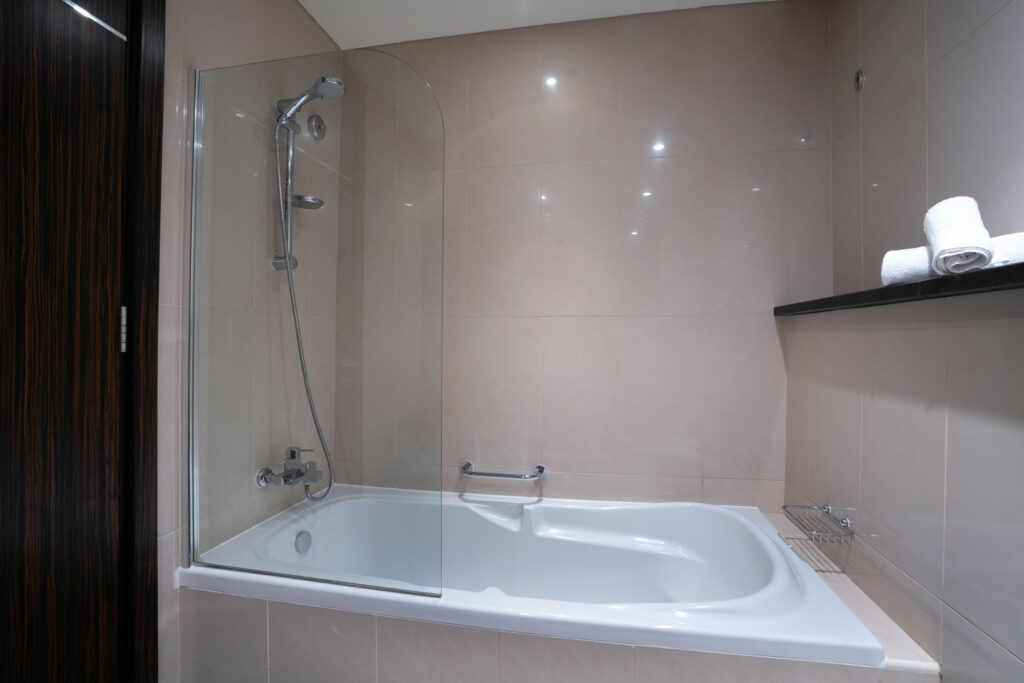 • Well-appointed bathroom with bathtub, and a guest toilet