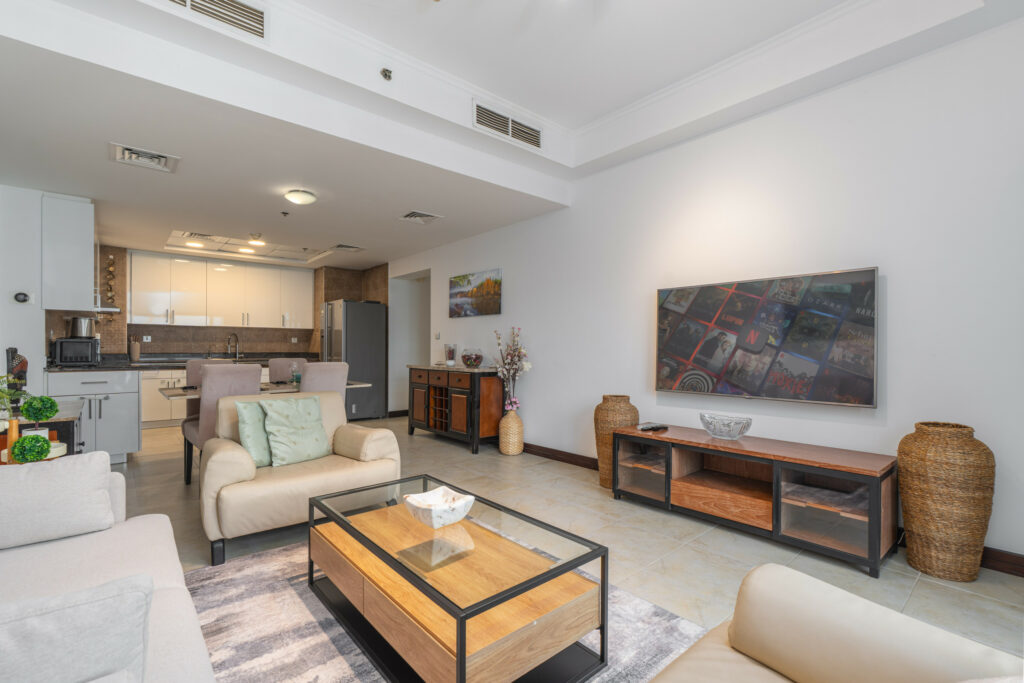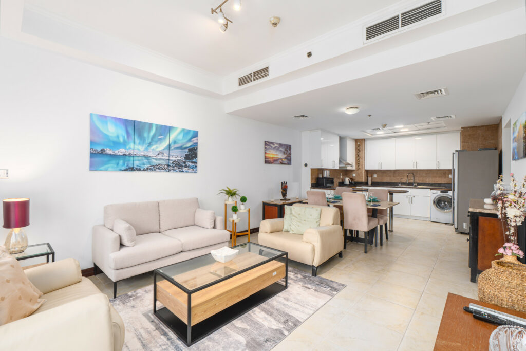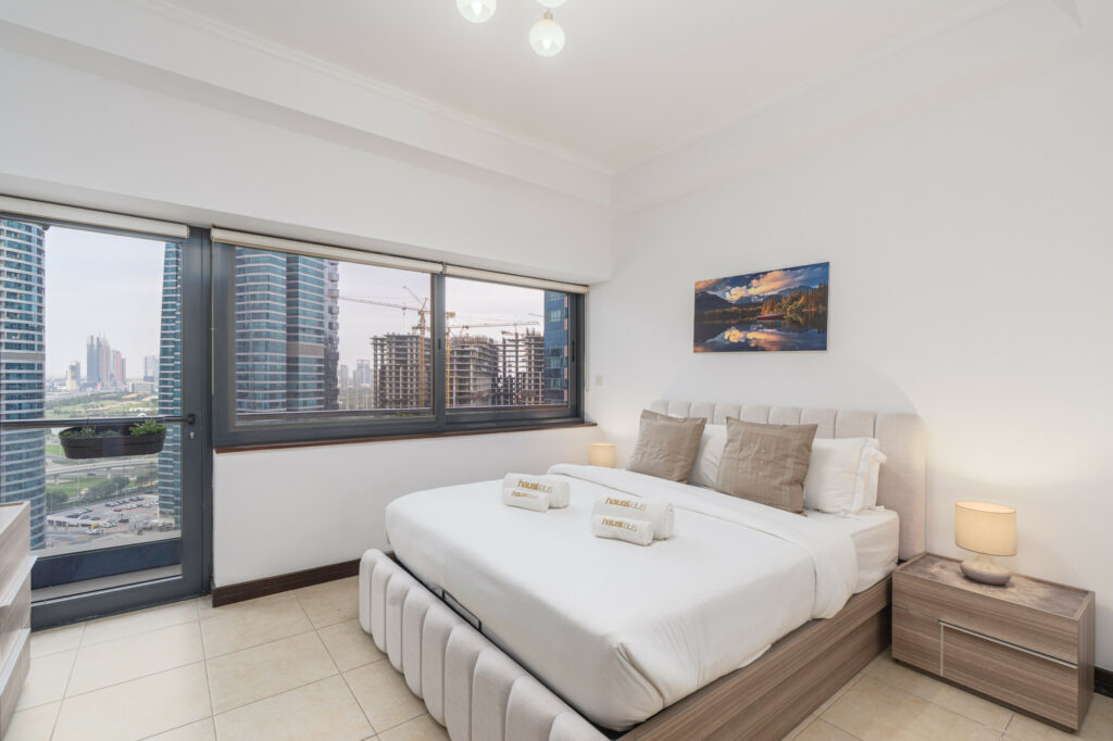 Set on a high floor, this apartment offers bright interiors, an open-plan layout, and sweeping views of the JLT and skyline. With spacious rooms, comfortable furnishings, and full access to building amenities, it’s a perfect choice for families, business travellers, or long-stay guests seeking comfort and accessibility.