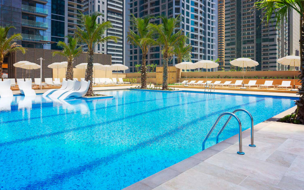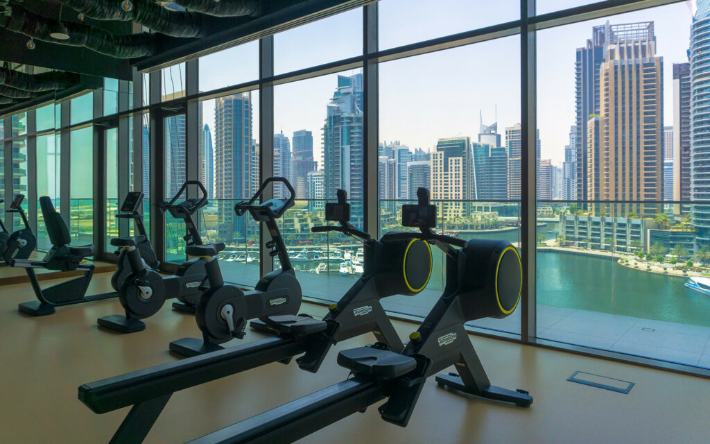 • Access to temperature-controlled infinity swimming pool overlooking the Marina skyscrapers