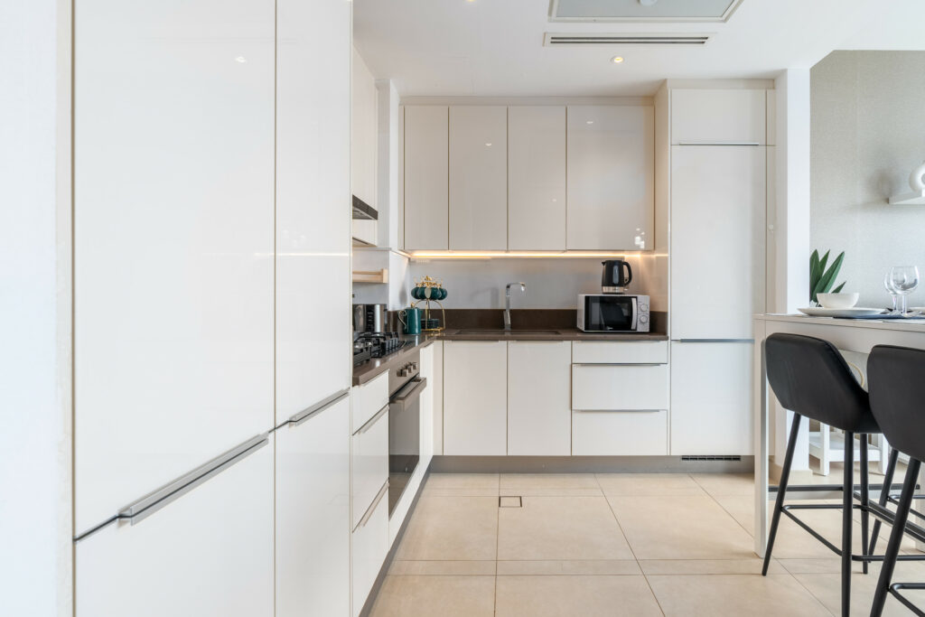 Perched on a high floor, this refined holiday retreat offers stunning marina views that perfectly complement its spacious and sophisticated interiors.