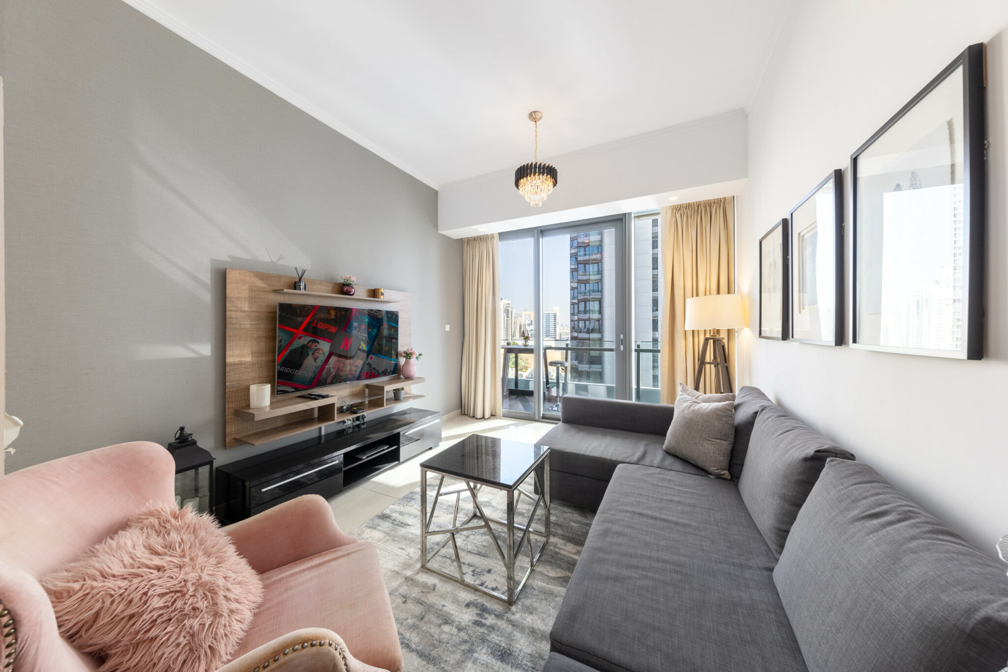 • Tranquil living space fitted with comfortable seating and smart TV