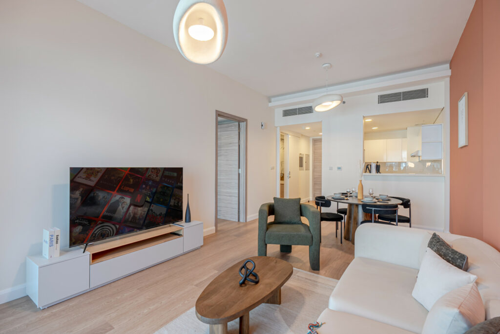 • Relax and unwind in the spacious living area, immersing yourself in entertainment with the smart TV