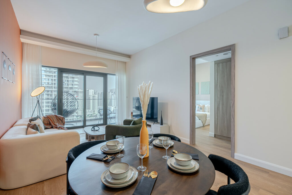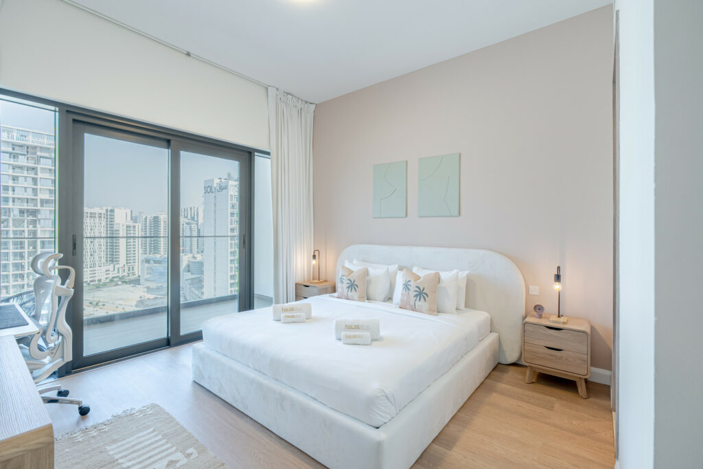 haus & haus holiday proudly presents this inviting 1-Bedroom Apartment in Bloom Tower, Jumeirah Village Circle.Set on a high floor, this thoughtfully designed home offers sweeping city skyline views from the balcony. The interiors exude a cosy, welcoming feel, with everything you need for a rela...