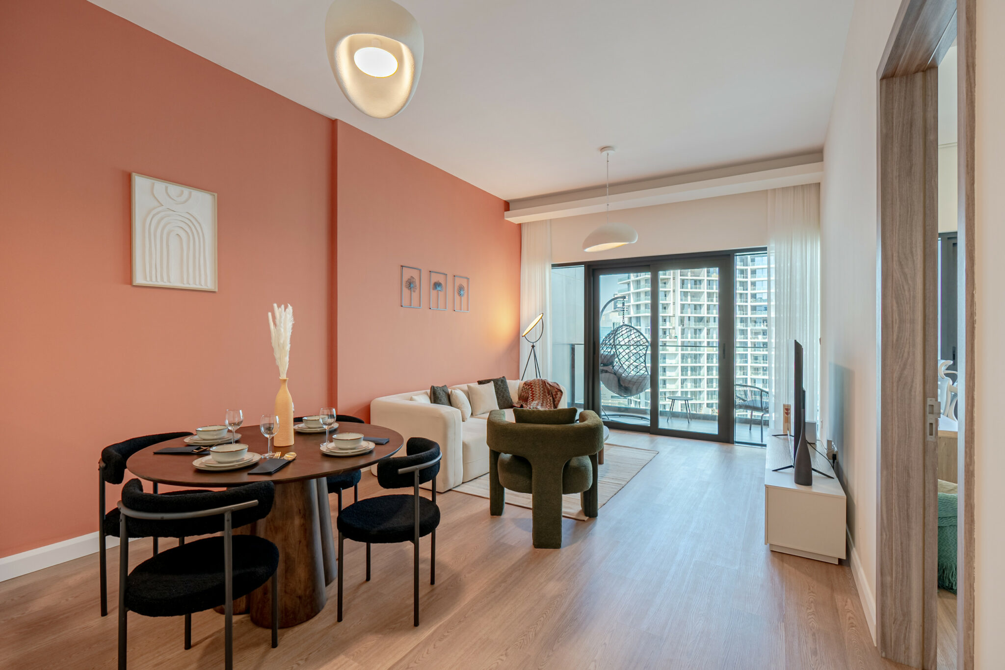Take pleasure in living in an easily accessible holiday home in an established and business-friendly community. Your home features contemporary interiors, large windows, and balcony that overlooks the stunning Burj Khalifa and Dubai Canal.