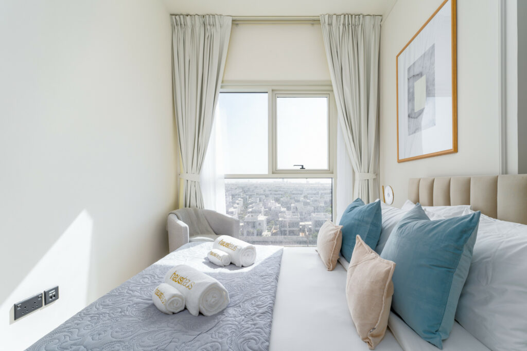 haus & haus holiday is pleased to provide this cosy inviting 2 Bedroom Apartment in Collective, a luxurious haven in Dubai Hills Estate. This lovely holiday home is surrounded by lush landscapes and trees, has unique facilities that cannot be found in other communities, and is convenient to an array of educational, retail, medical, recreational, and social facilities.