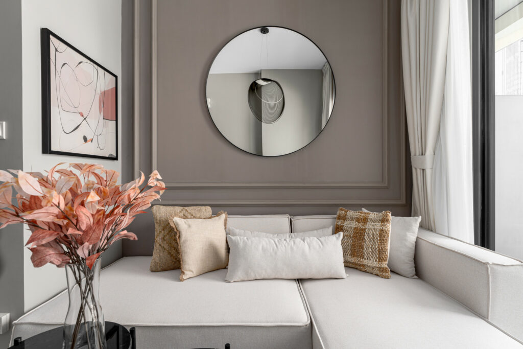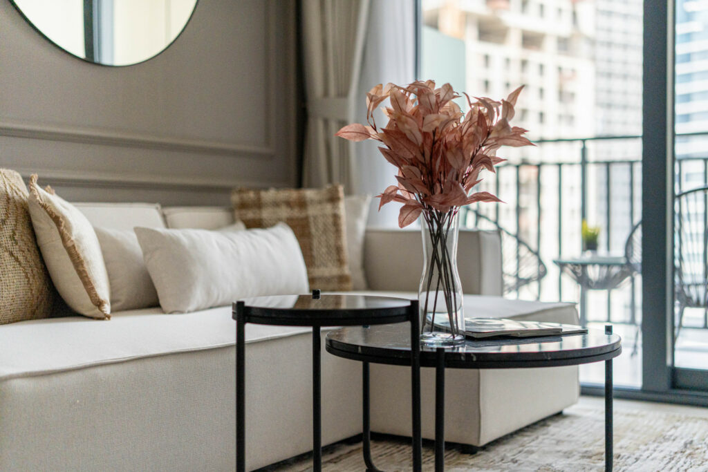 • Cosy living space with comfortable sofa, accent table, and smart TV