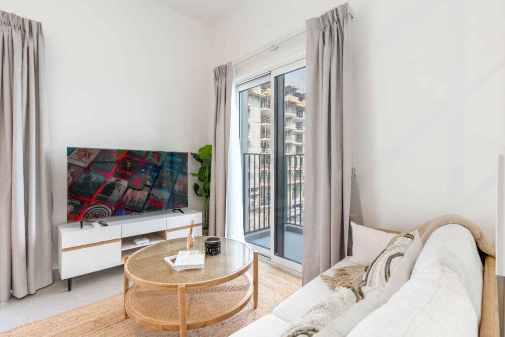 • Cosy living area with comfortable sofa and a smart TV