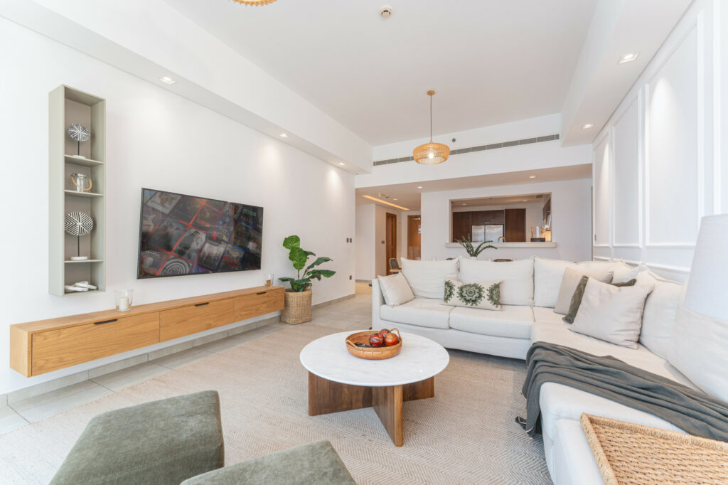 With its open layout and modern touches, this apartment is ideal for those seeking a stylish stay in one of Dubai’s most prestigious locations.