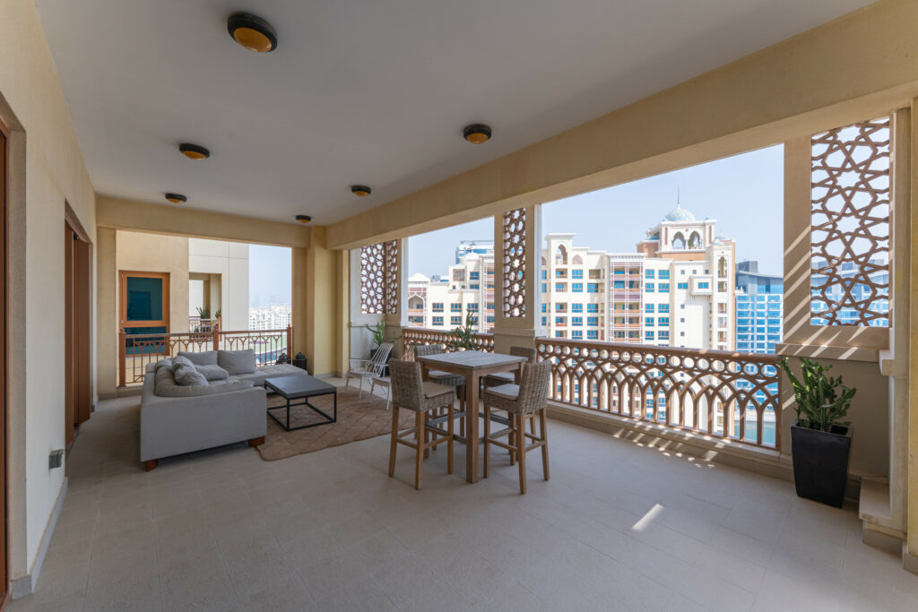 • Large private balcony with spectacular views of the Palm, Marina, and Ain Dubai as well as the sunset
